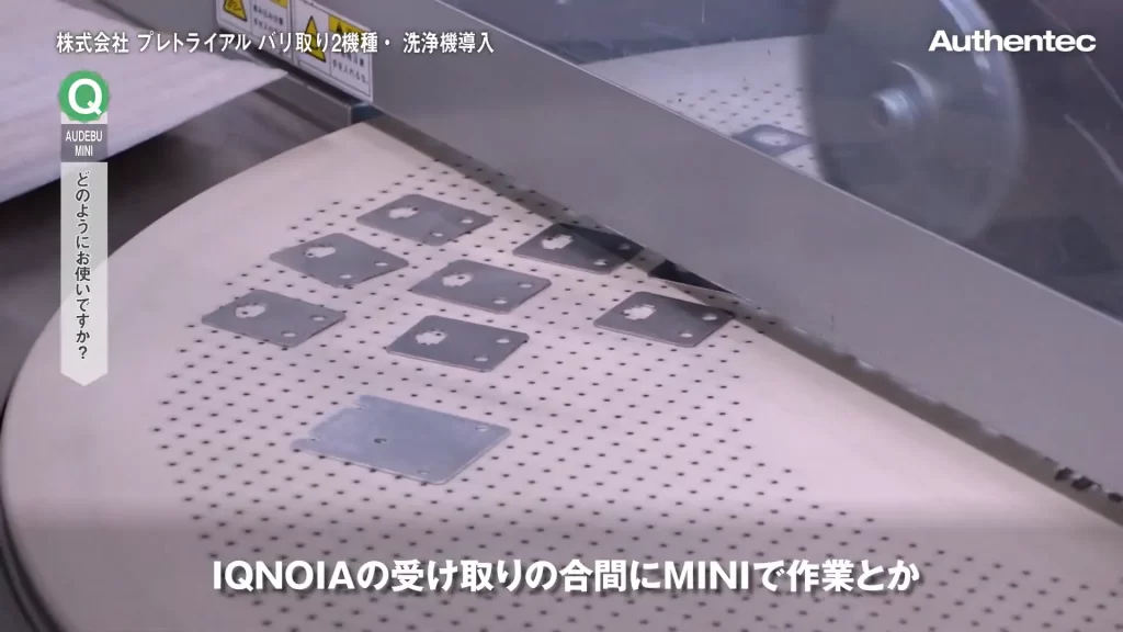 具体的には、AUDEBU IQNOIAでの作業中に受け手を担当する作業員が、そのあいだにAUDEBU Miniで小さなワークのバリ取りを行う、といったかたちで運用しています。