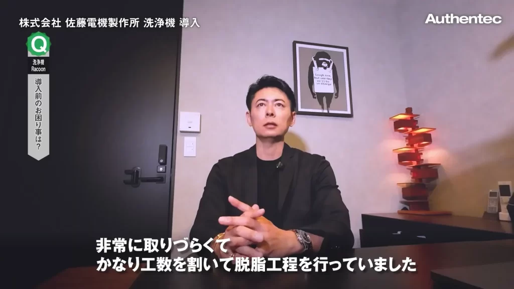 佐藤様:板金加工の脱脂工程にかなりの工数がかかっていたこと、そして、それを解消するために導入を検討した洗浄機でトラブルがあったことの2点ですね。