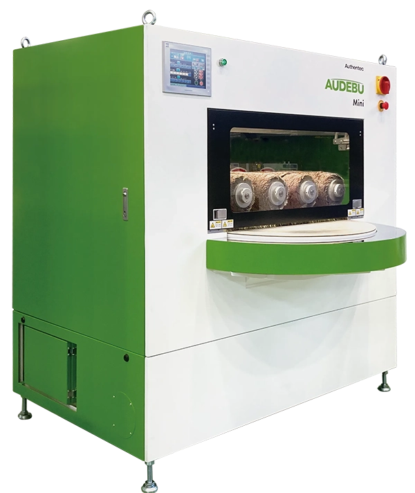 ミニサイズながら、パワフルかつR面取り加工も可能なバリ取り機モデル。 AUDEBU Miniは、従来不可能であった、硬貨・切手サイズなどの小物ワークにも対応しています。ブラシを3本から4本に増設、またターンテーブル方式の採用により、生産性の大幅UPを実現します。 ワークの搬入口は1方向なので、スペースの有効活用も図れます。